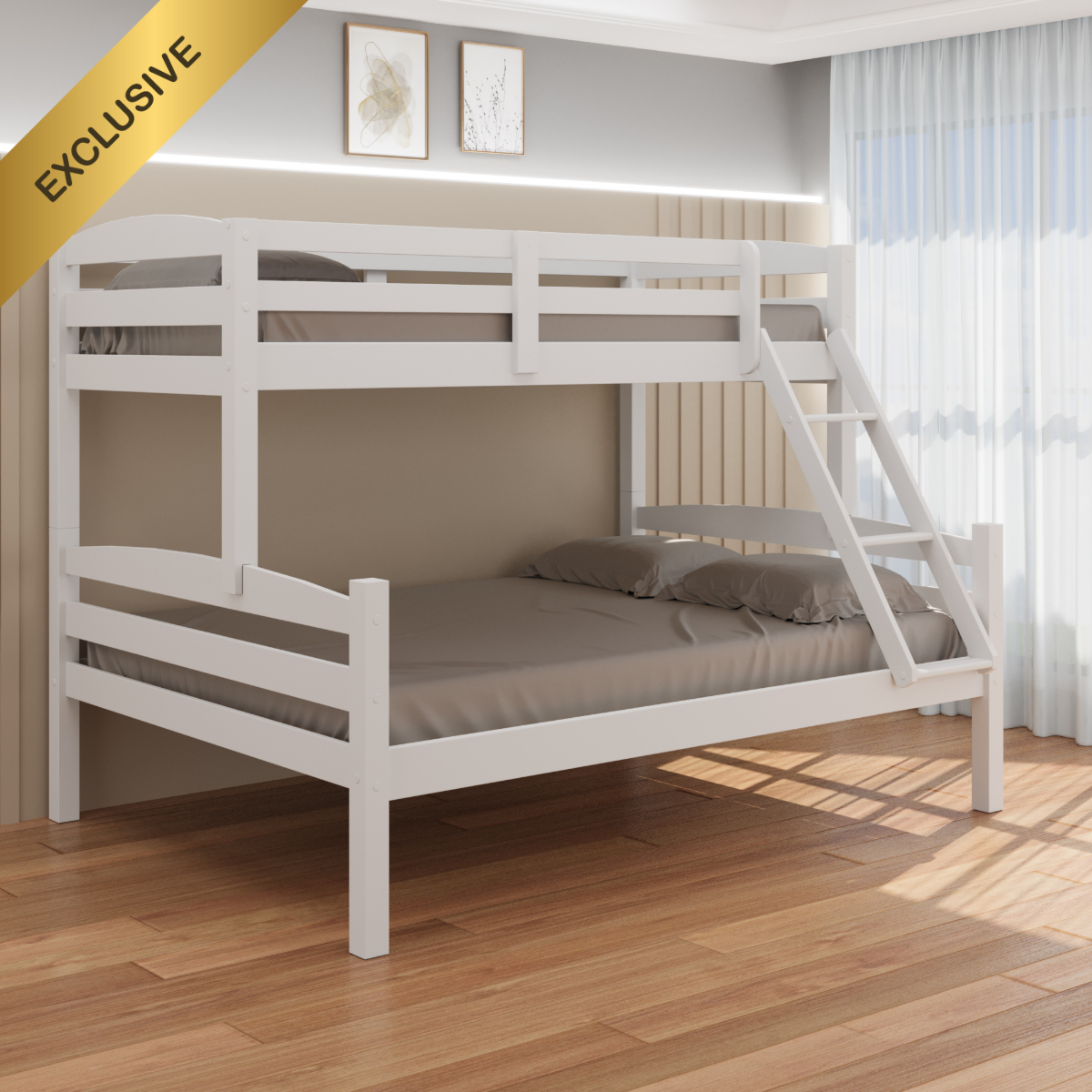Beliche Casal + Solteiro em Madeira Maciça – Design Moderno, Estrutura Robusta e Ótimo Aproveitamento de Espaço