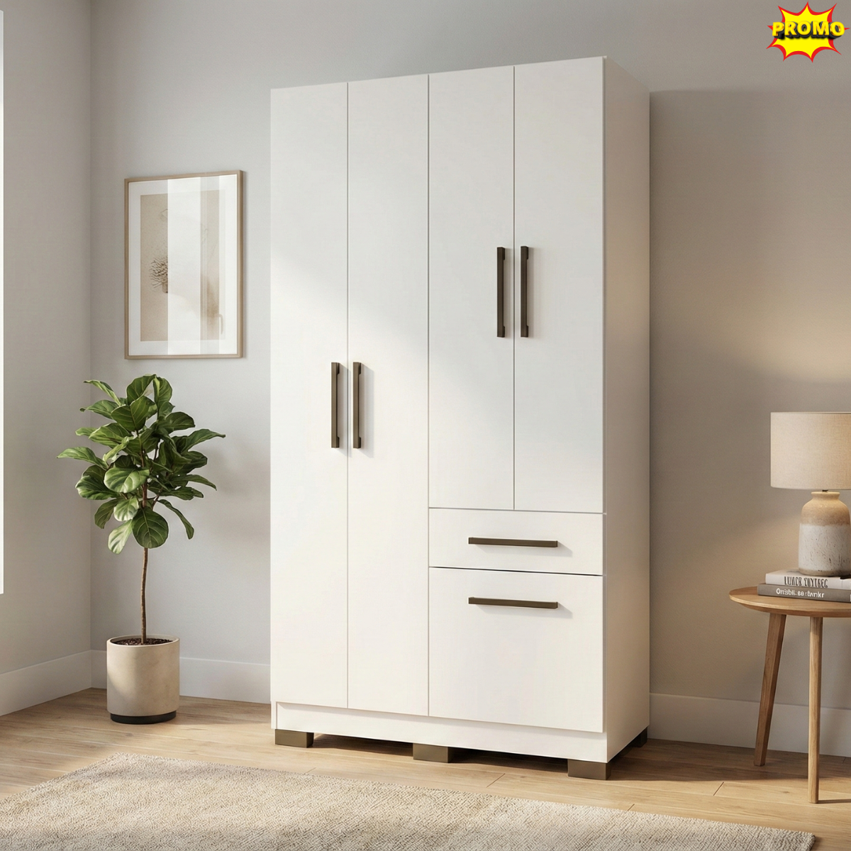 Para garantir a durabilidade do seu Roupeiro Laguna, limpe-o com um pano seco ou levemente umedecido. Evite produtos abrasivos que possam danificar o acabamento.